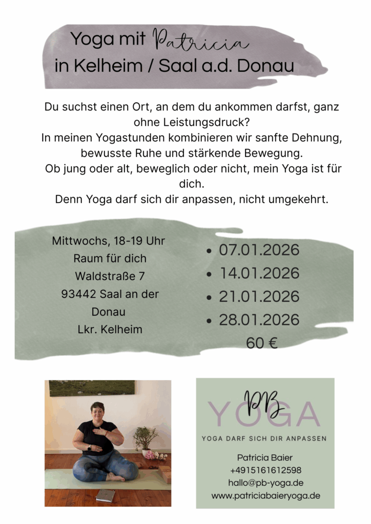 Ab Januar 2026 werde ich Yoga auch in Kelheim anbieten.